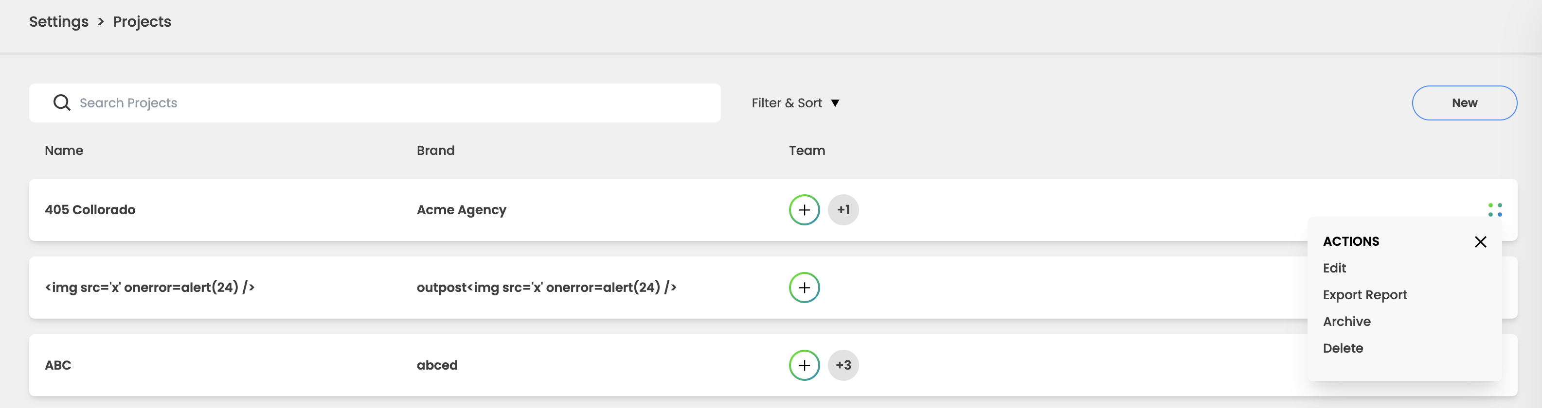 To archive a Project, navigate to Settings > Projects in your Dashboard. Find the Project you wish to archive and click the 4-dot icon on the right-hand side. Choose “Archive” from the drop-down menu.
