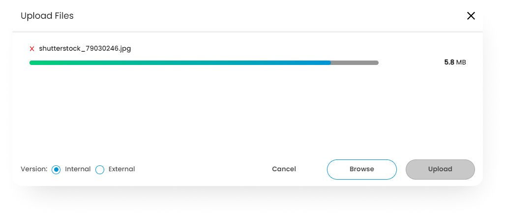 You may then drag and drop the files from your OS file browser or click to select the files that you wish to upload. The files will be displayed in the Upload menu. Once you have all the files you want displayed, click the Upload button to initiate the uploading.