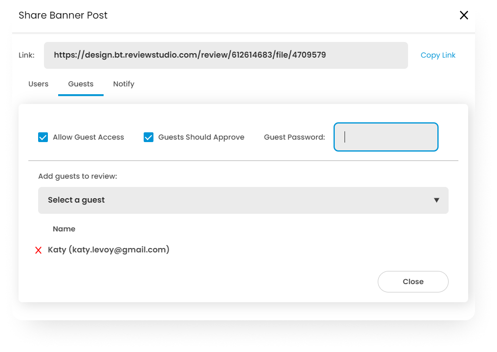 These users can also see the comments and @mentions or all other External members. A typical scenario here is for when your Client (or external team) wants to involve others in their organization in the review process and share their feedback between them.
