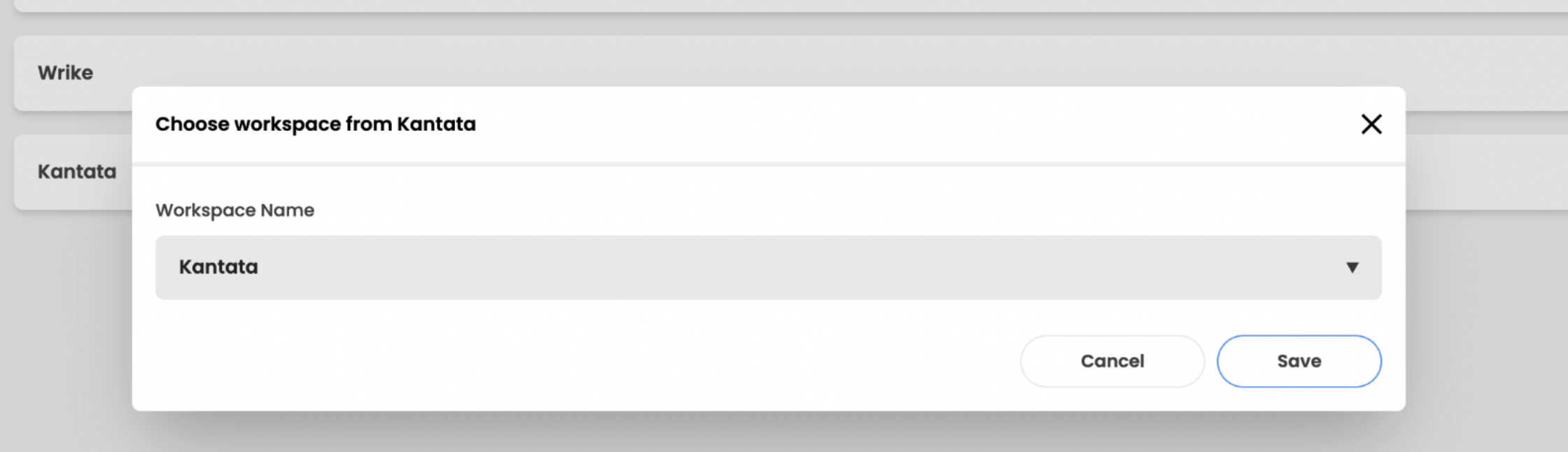 After the connection is established, click the action menu again and select Sync Workspace to choose the Kantata workspace you wish to connect to your ReviewStudio account.