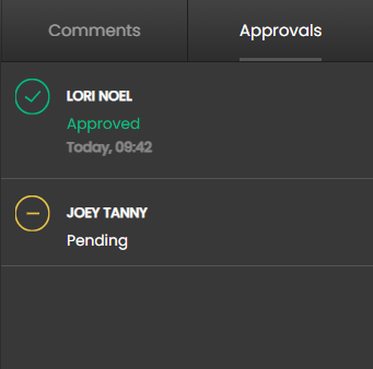 Similarly, the Collaborator menu will also show the current approval status of each Approver.