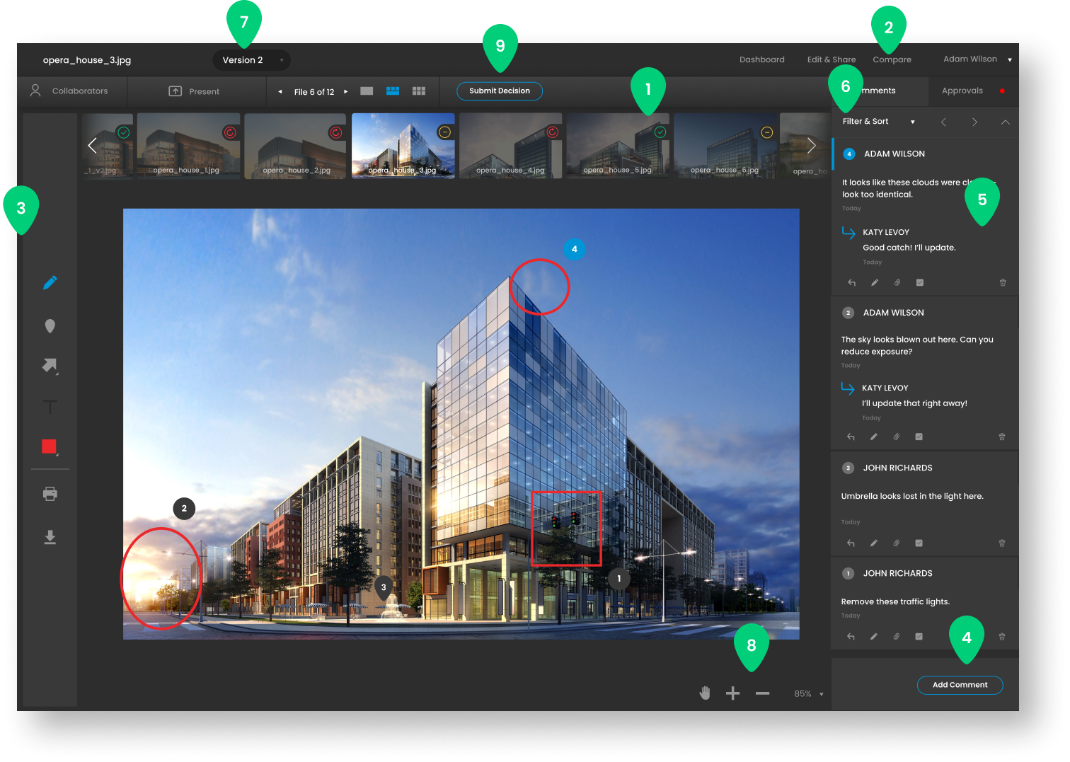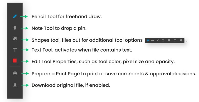 In the toolbar, you’ll find all the tools you need to leave accurate and precise markups and feedback.