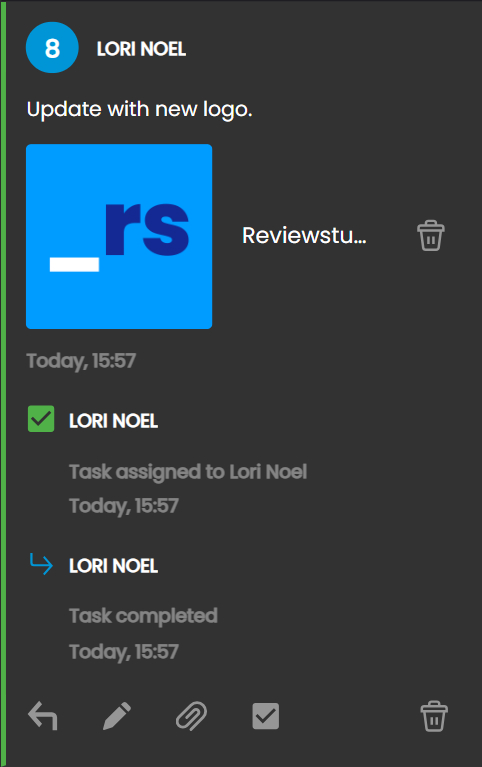 Once a task is completed the color band in the comment header will turn green as an indicator that the task has been completed.