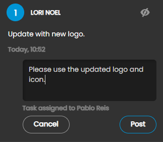 After selecting the user, you have the option to add any additional comments or instructions. Then click “Post” to confirm the assignment or Cancel to cancel the task and comment.